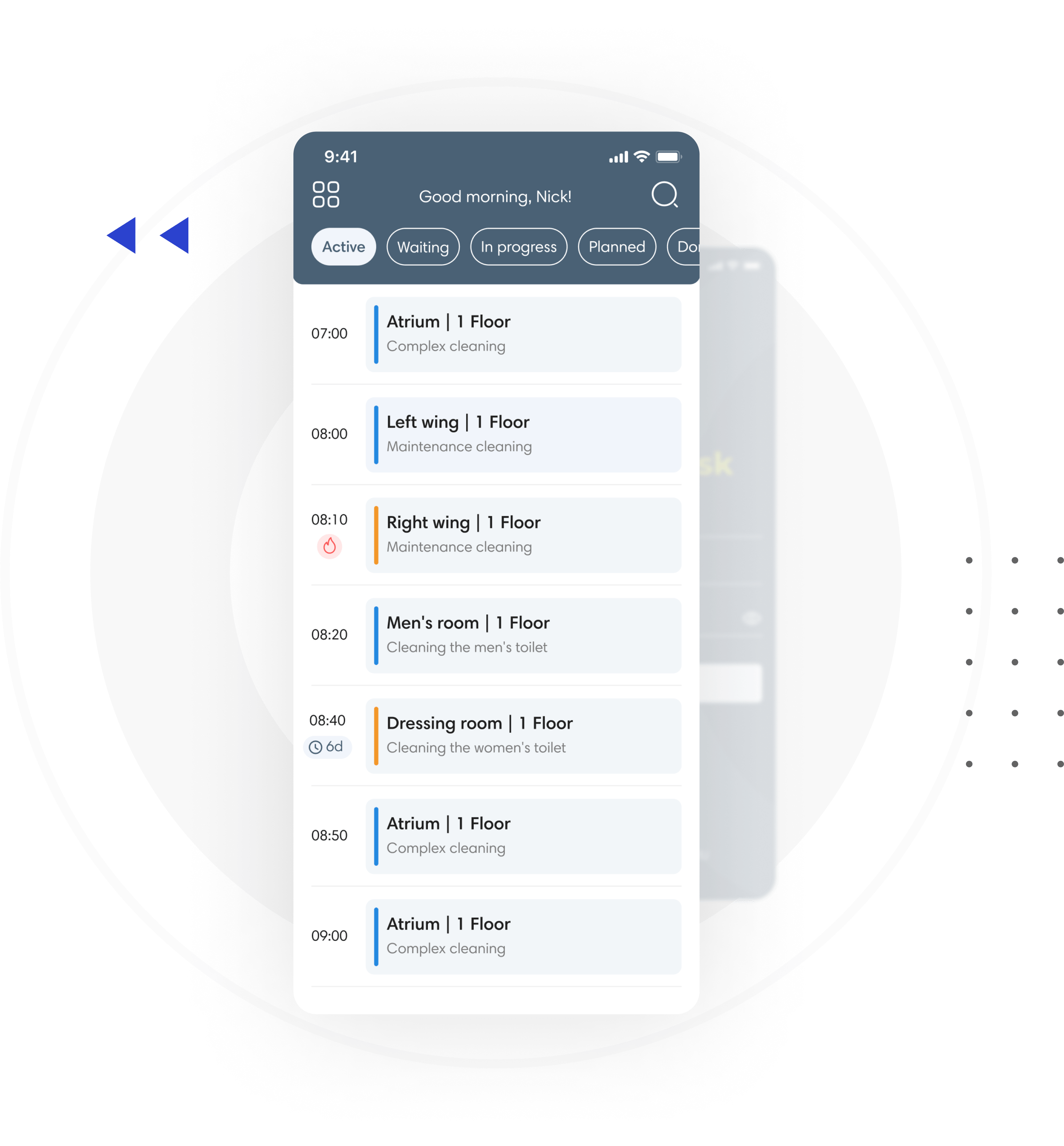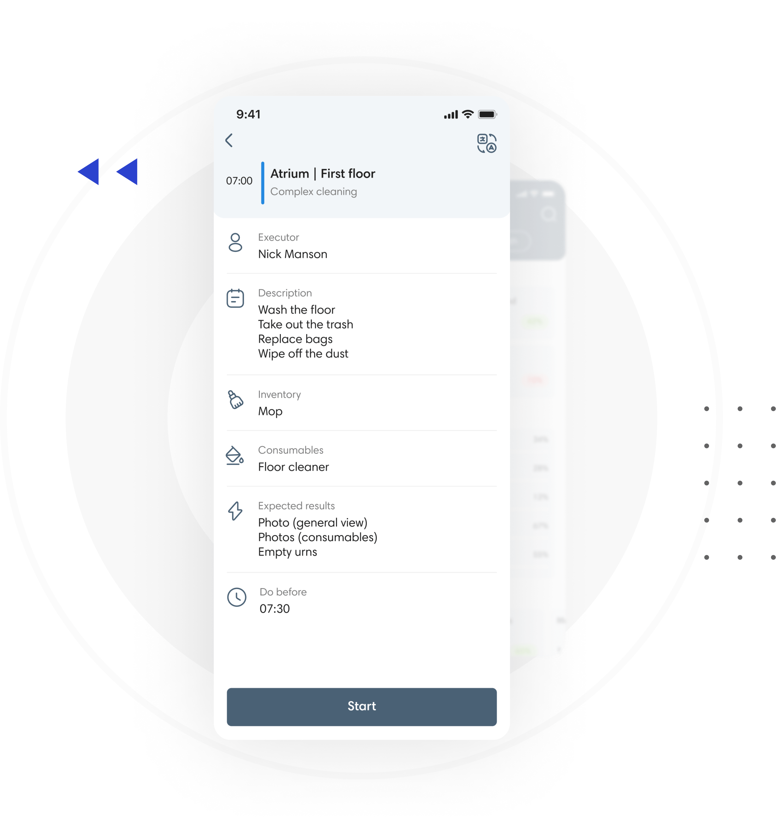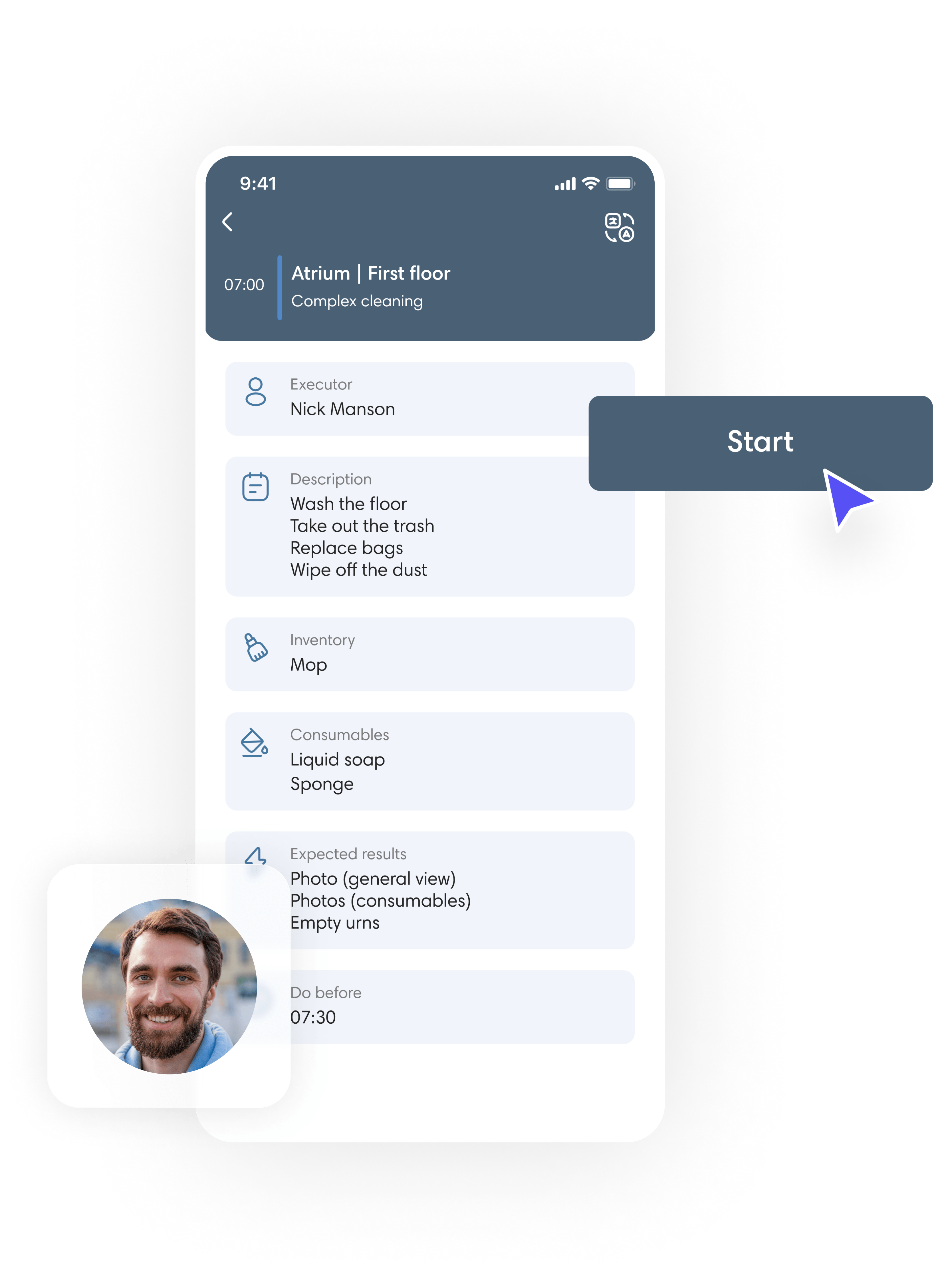In each task, an employee can see a list of actions, required inventory and consumables with translation into his native language