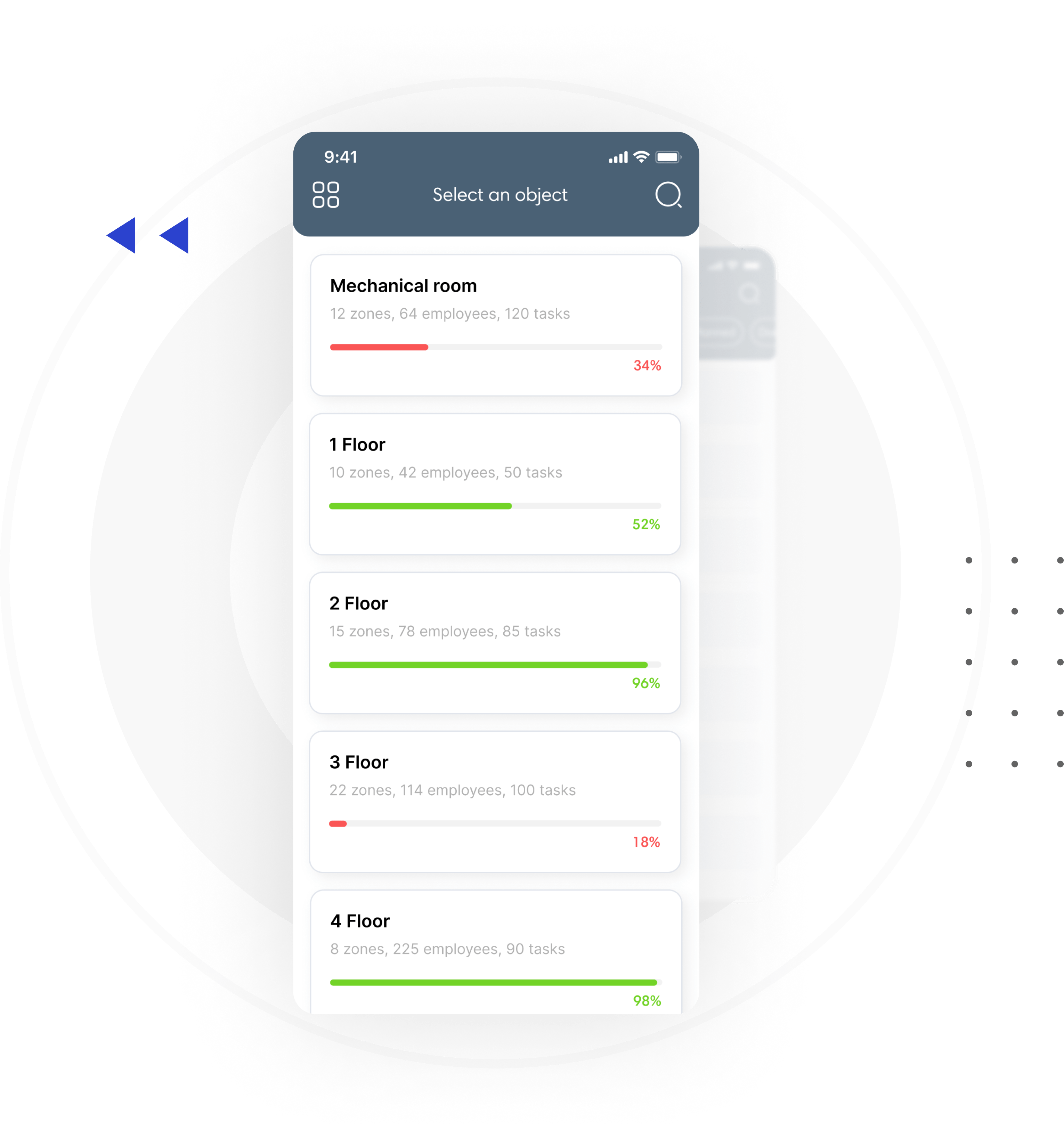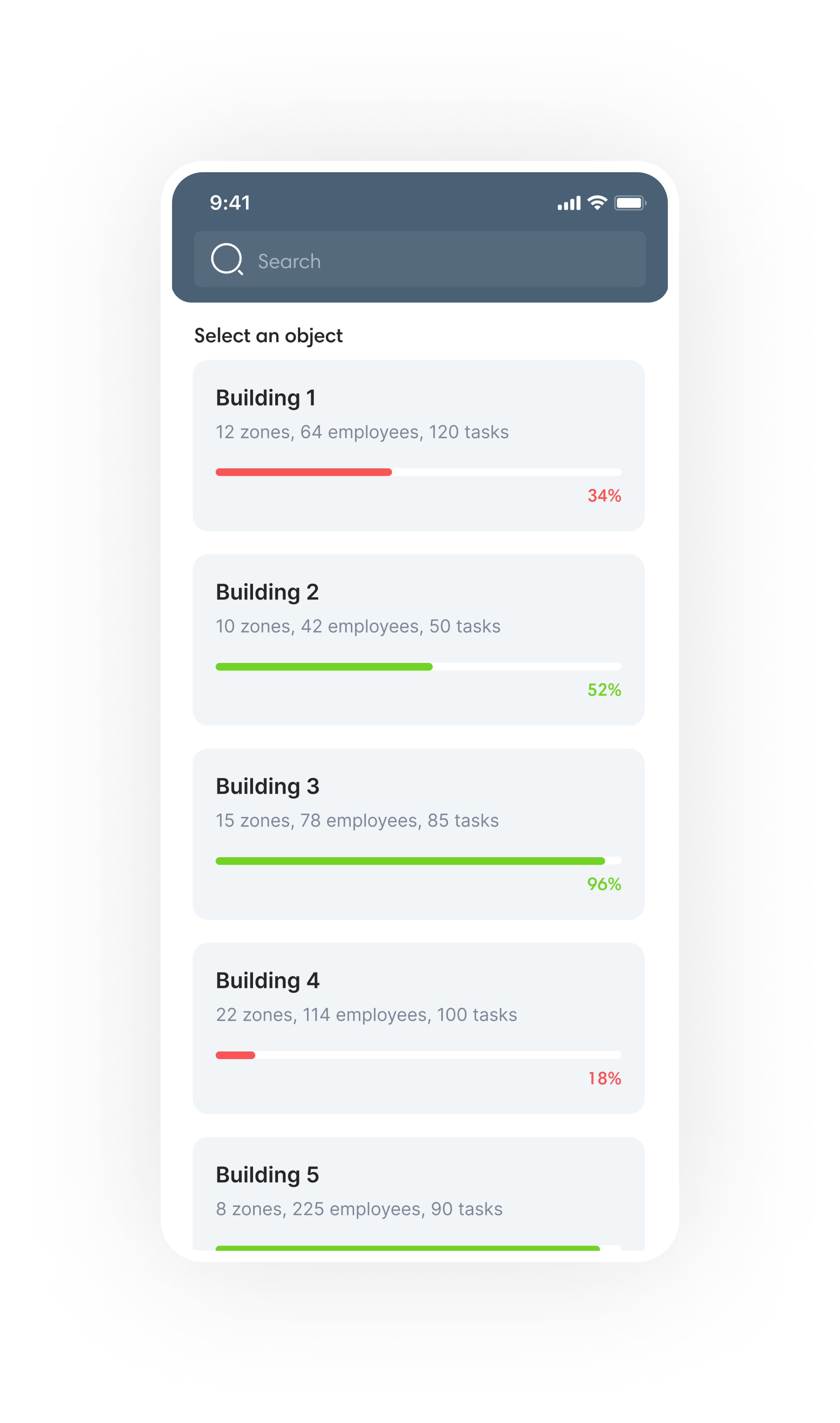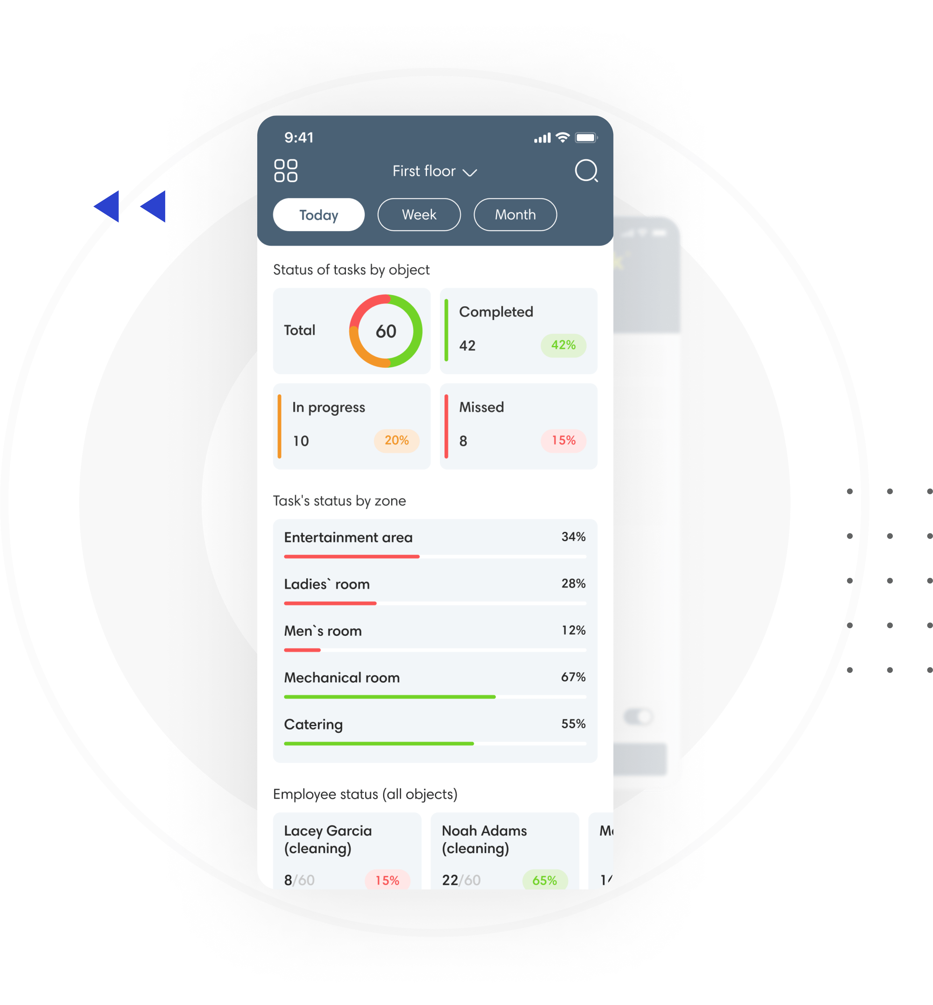 The manager in his application or in the computer sees the completion of all tasks by all employees at all their facilities
