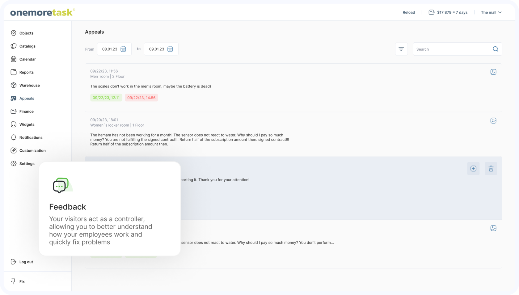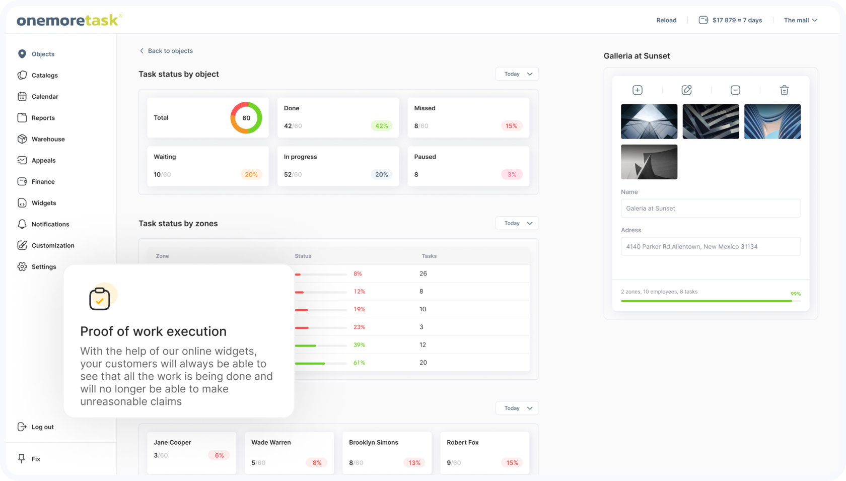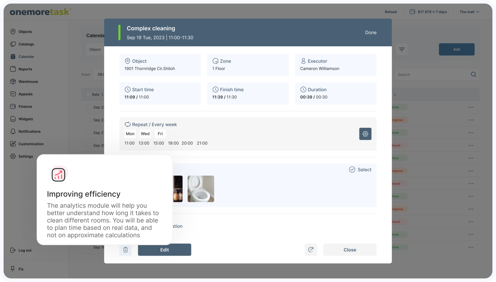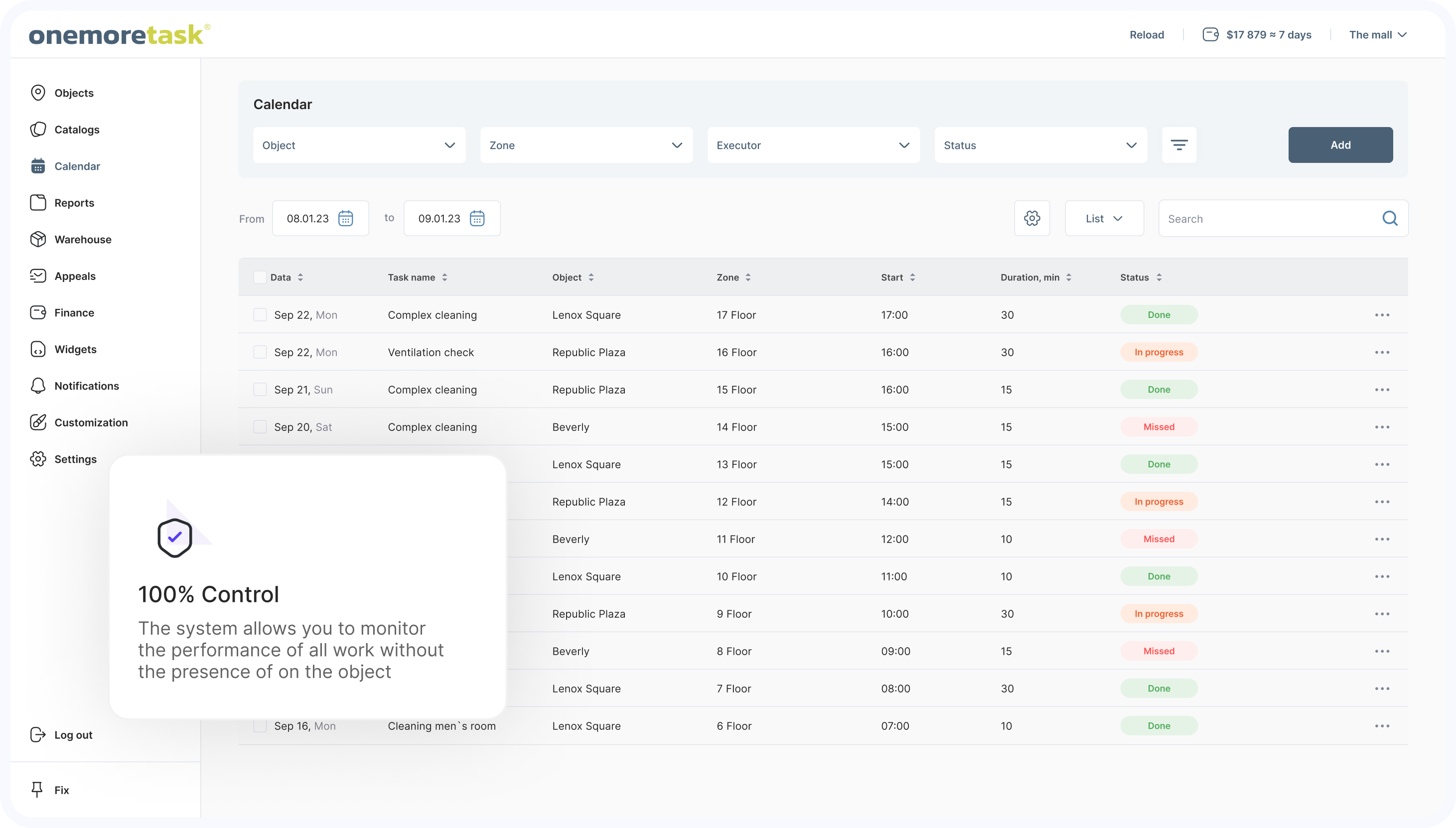 The manager in his application or in the computer sees the completion of all tasks by all employees at all their facilities